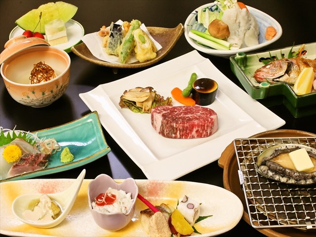 但馬の旬の食材を存分に味わって頂く、支配人渾身の数々のおもてなし料理。四季折々ならではの食材の美しさを丁寧に届け、心も身体もあたたまる、当館自慢のお料理をごゆっくりお楽しみください。